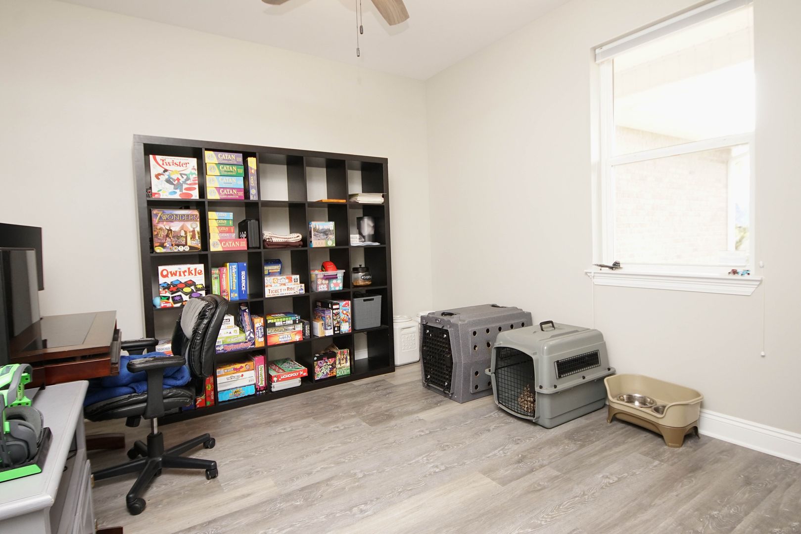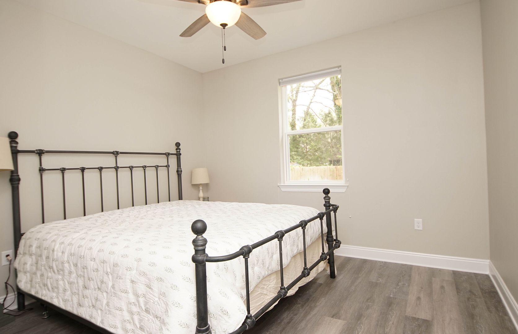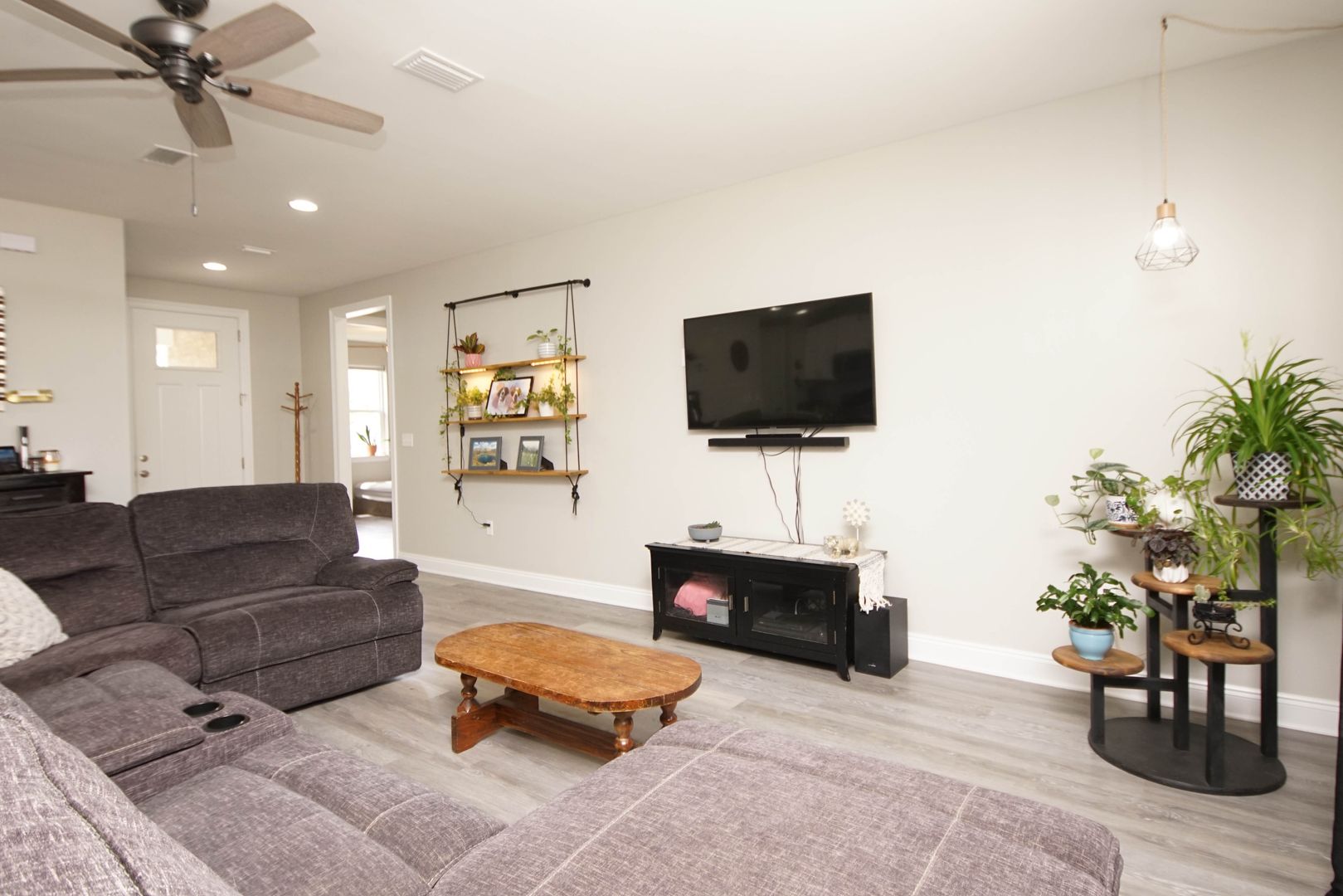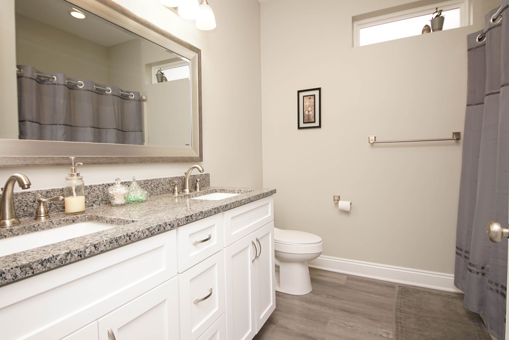 Newer home in Valparaiso with neutral paint colors and vinyl plank floors (no carpet) This is a nicely appointed 4 bedroom, 2 home with a split bedroom floor plan, large open living room , kitchen and dining room. Kitchen has lots of cabinets, granite counters , breakfast bar and stainless appliances. Master suite is large with an ensuite bathroom. Bathroom has double vanities, walk in closet, shower. Additional bedrooms are across the home and share the hallway bathroom. Outside there is a large fenced back yard. Attached 2 car garage .