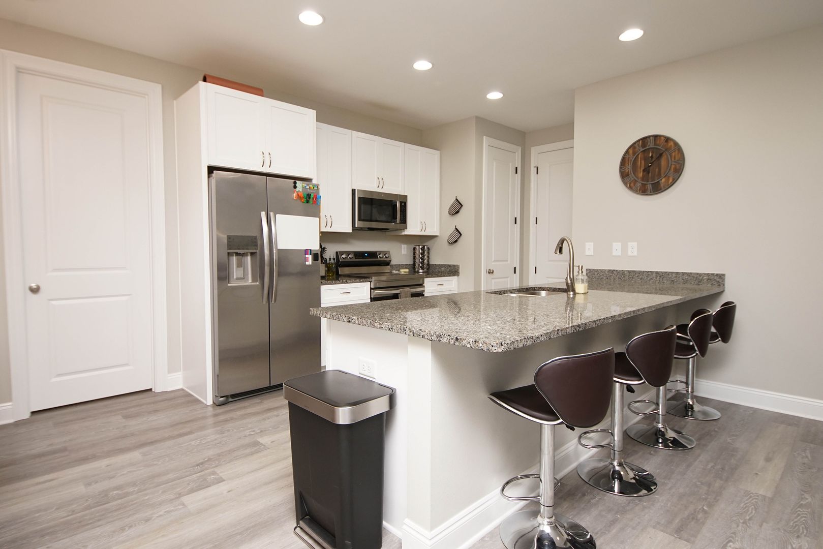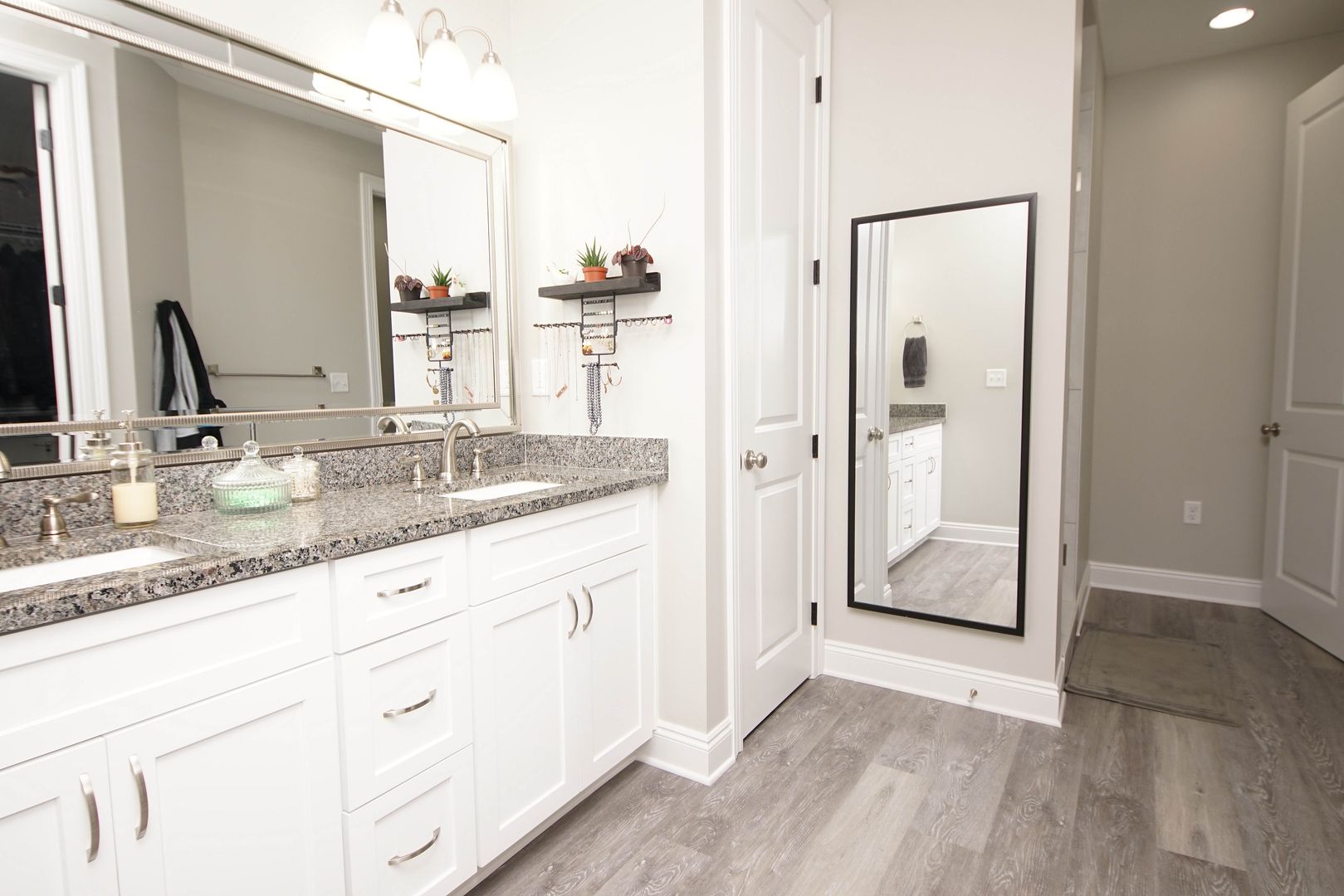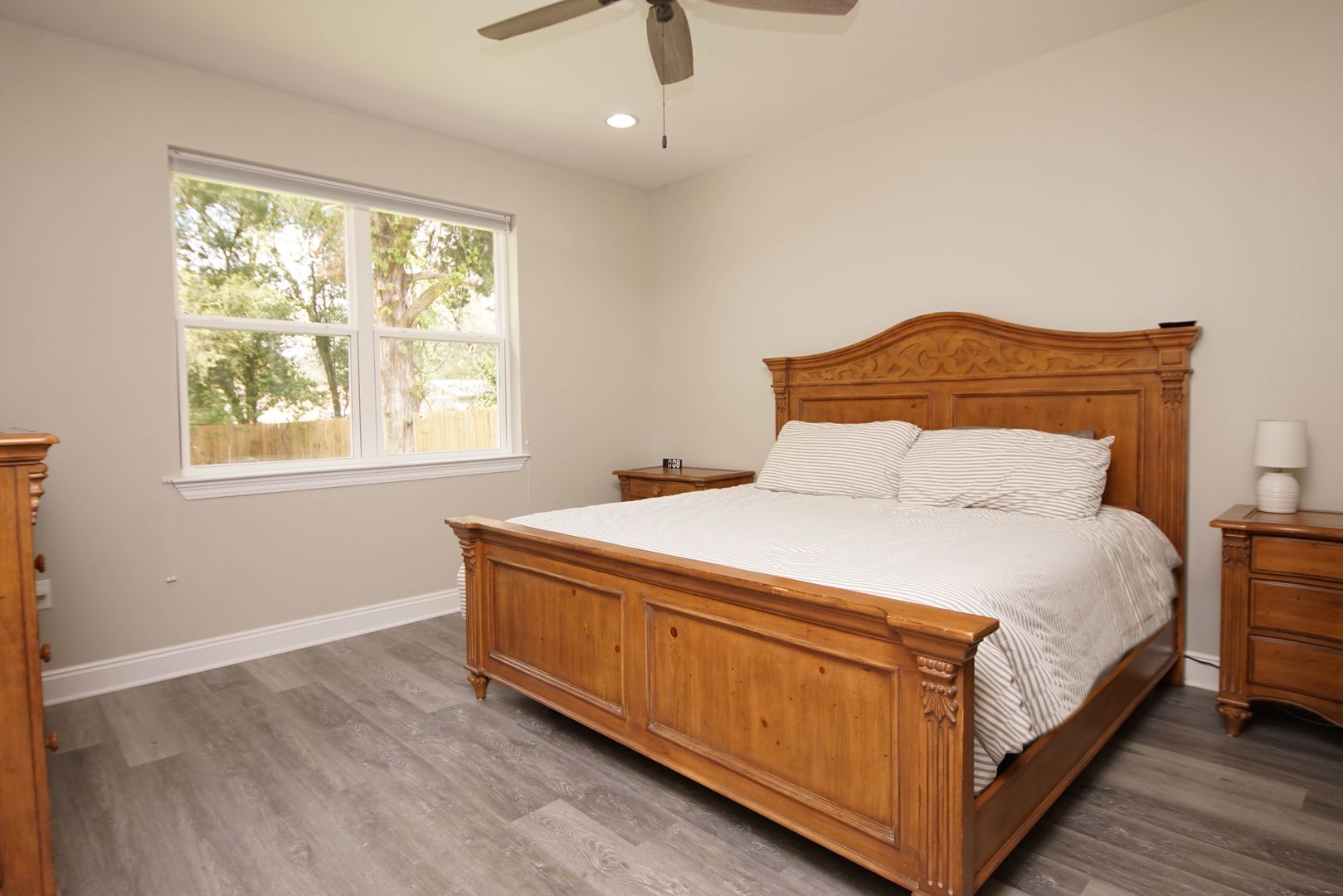 Newer home in Valparaiso with neutral paint colors and vinyl plank floors (no carpet) This is a nicely appointed 4 bedroom, 2 home with a split bedroom floor plan, large open living room , kitchen and dining room. Kitchen has lots of cabinets, granite counters , breakfast bar and stainless appliances. Master suite is large with an ensuite bathroom. Bathroom has double vanities, walk in closet, shower. Additional bedrooms are across the home and share the hallway bathroom. Outside there is a large fenced back yard. Attached 2 car garage .