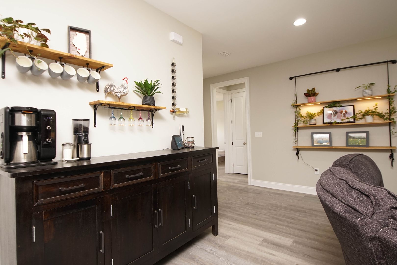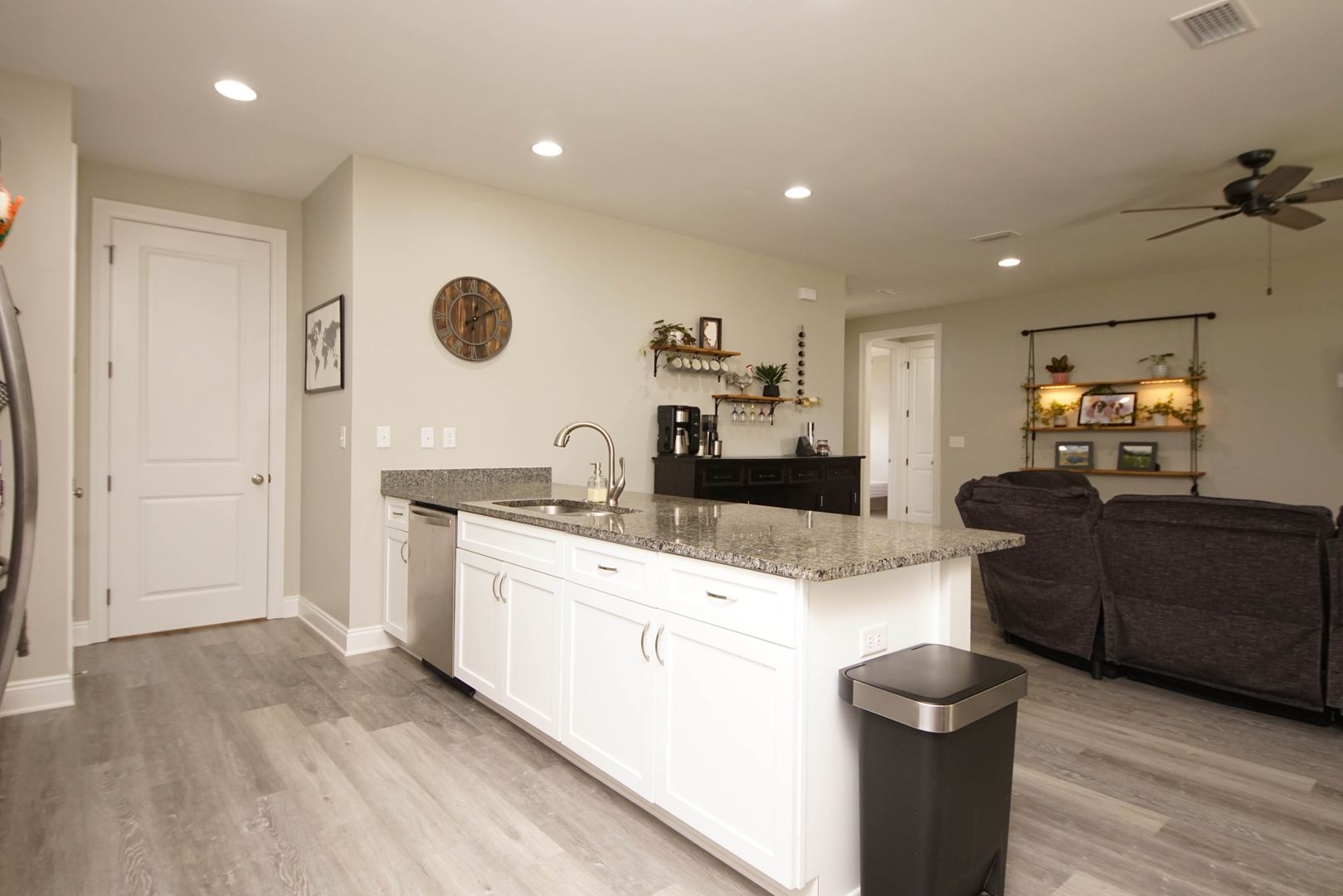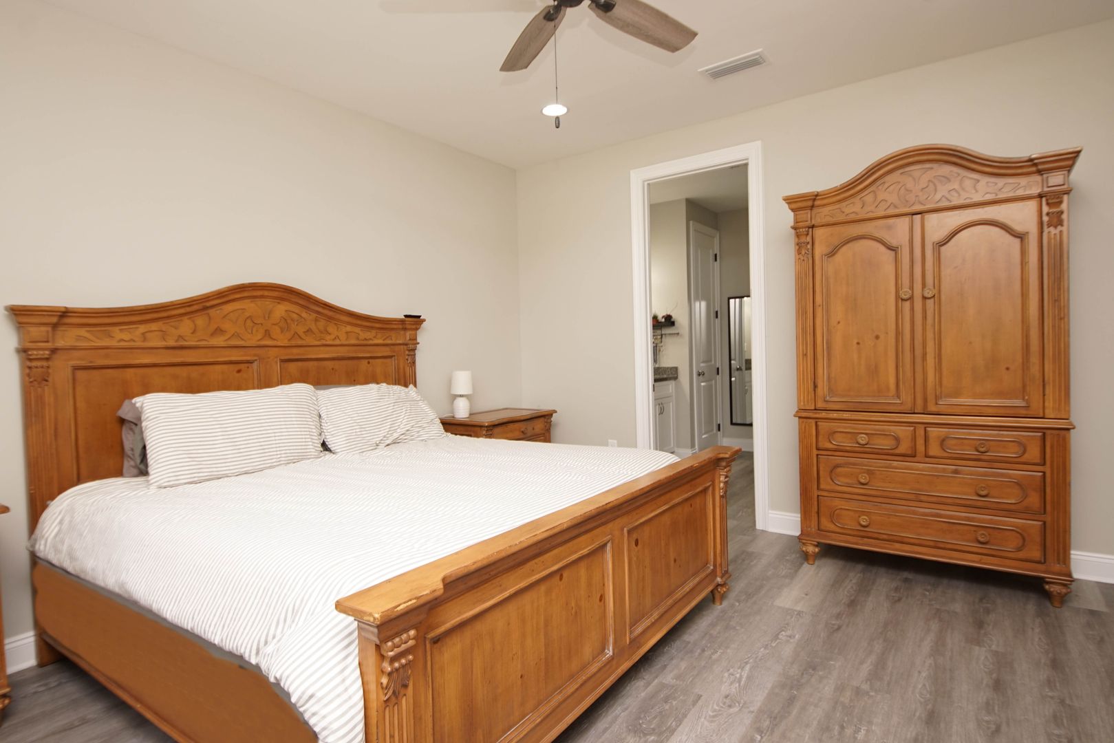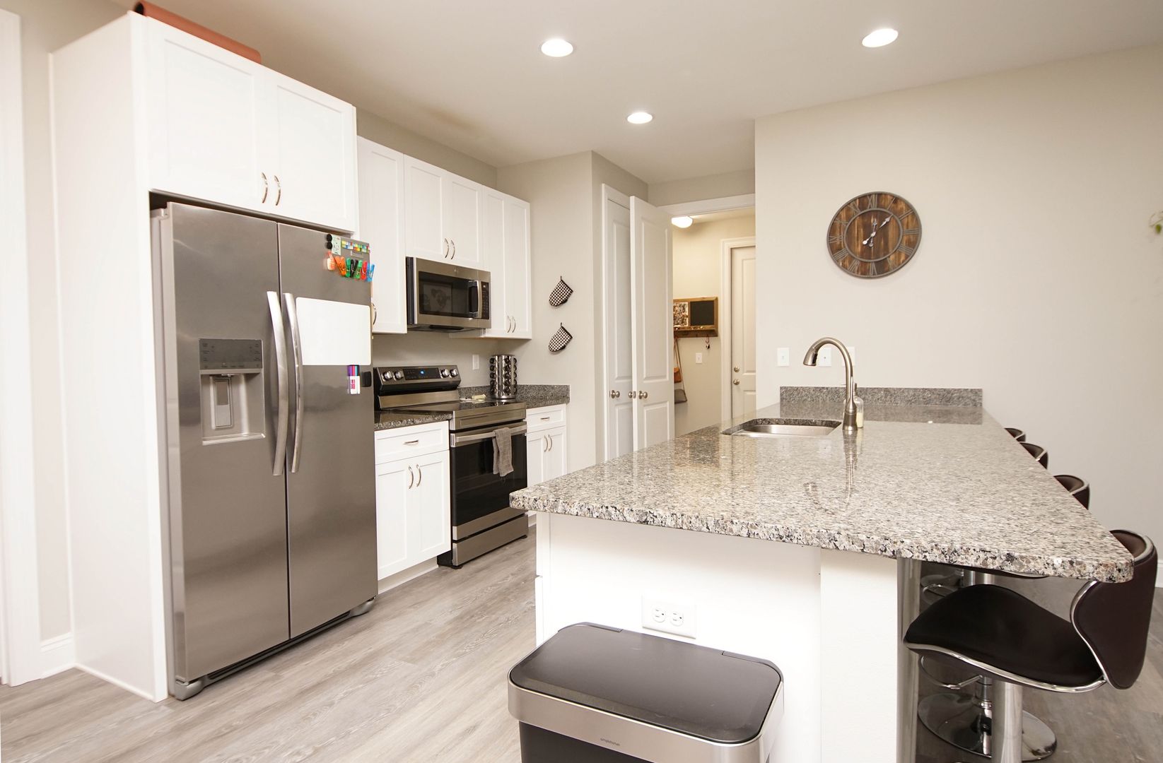 Newer home in Valparaiso with neutral paint colors and vinyl plank floors (no carpet) This is a nicely appointed 4 bedroom, 2 home with a split bedroom floor plan, large open living room , kitchen and dining room. Kitchen has lots of cabinets, granite counters , breakfast bar and stainless appliances. Master suite is large with an ensuite bathroom. Bathroom has double vanities, walk in closet, shower. Additional bedrooms are across the home and share the hallway bathroom. Outside there is a large fenced back yard. Attached 2 car garage .
