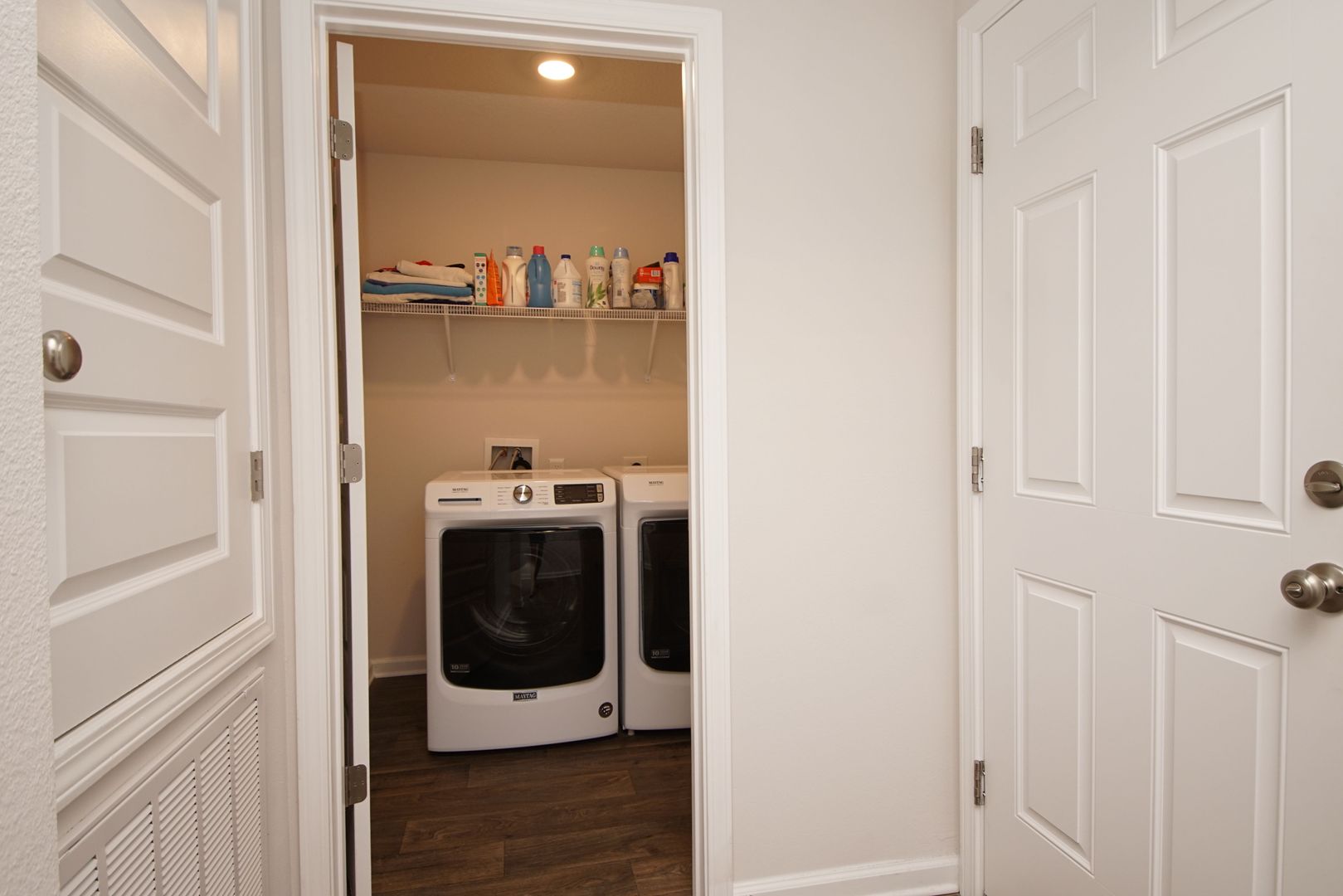 Additional highlights include neutral paint throughout, luxury vinyl plank flooring in the main living areas, a fenced backyard, and a two-car garage.